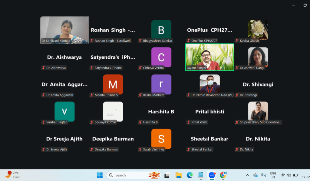 The organizing team extends sincere gratitude to Dr. Vithalrao Vikhe Patil Foundation’s College of Physiotherapy for hosting this academic initiative. Special appreciation is conveyed to Mr. Roshan Singh and Dr. Sanjivani Dhote Kamble for delivering insightful and engaging sessions. The enthusiastic participation of faculty members played a vital role in the success of the program.